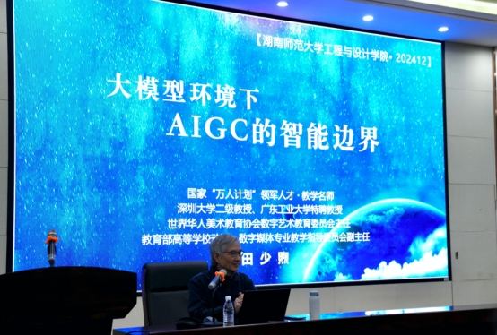 (通讯员:欧阳诗婕 谢婉瑶)12月5日上午,学院设计学学术前沿系列讲座在报告厅举行。邀请了深圳大学田少煦教授进行“大模型环境下AIGC的智能边界”主题讲座,由学院陈剑教授担任学术主持。