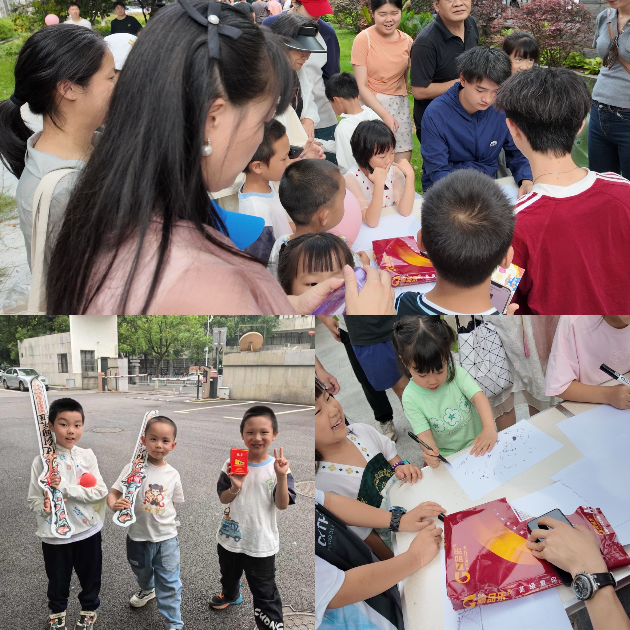 上午,学院内一片热闹景象,“六一亲子游园会”正式拉开序幕。活动现场布置得别出心裁,温馨而富有创意。一个个特色摊位有序排列,涵盖音乐欣赏、趣味游戏等多元板块。师生们穿梭其间,尽情体验游玩乐趣,积极参与猜歌、投壶等娱乐项目,欢声笑语回荡在校园的每一个角落。在 “你画我猜” 摊位前,小朋友们化身 “小画家”,既要精准画出题目内容,又要兼顾同伴能否轻松理解,不能过于复杂。这一过程不仅增进了同学间的默契,更让大家充分享受游戏的趣味。而在卡牌游戏 “你在心口难开” 区域,两个小组展开激烈 PK,成员们充分发挥想象力,巧妙引导对方说出或做出卡片上的内容以获取胜利,现场其乐融融,欢乐氛围愈发浓厚。园游会极大地丰富了师生的课余生活,为大家搭建起放松身心、结交朋友的理想平台,让大家在轻松愉悦的环境中有效释放压力。