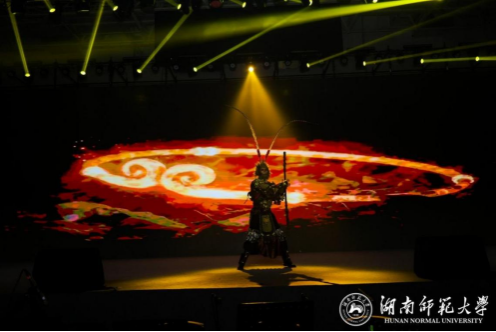 节目由新葡萄官网服装系表演专业沈晶老师编排指导,服装表演专业学生演绎,以《西游记》中的孙悟空形象为灵感来源,以“做自己的天命人”为主题。演出中,模特们的步伐刚劲有力,表情冷峻坚毅,配合着灯光的明暗变幻,演绎出冲破黑暗、破晓而出的气势,黑神话悟空的战甲、金箍棒等标志性元素在服饰上得到完美诠释,令人眼前一亮。台下观众沉浸其中,掌声雷动。这场服装秀不仅是视觉盛宴,更承载着新葡萄官网学子对传承与创新的深刻思考,以衣为语,在舞台上绘就一幅跨越时空、展现未来与传统的对话,寓意打破陈规、迎接天命新篇。