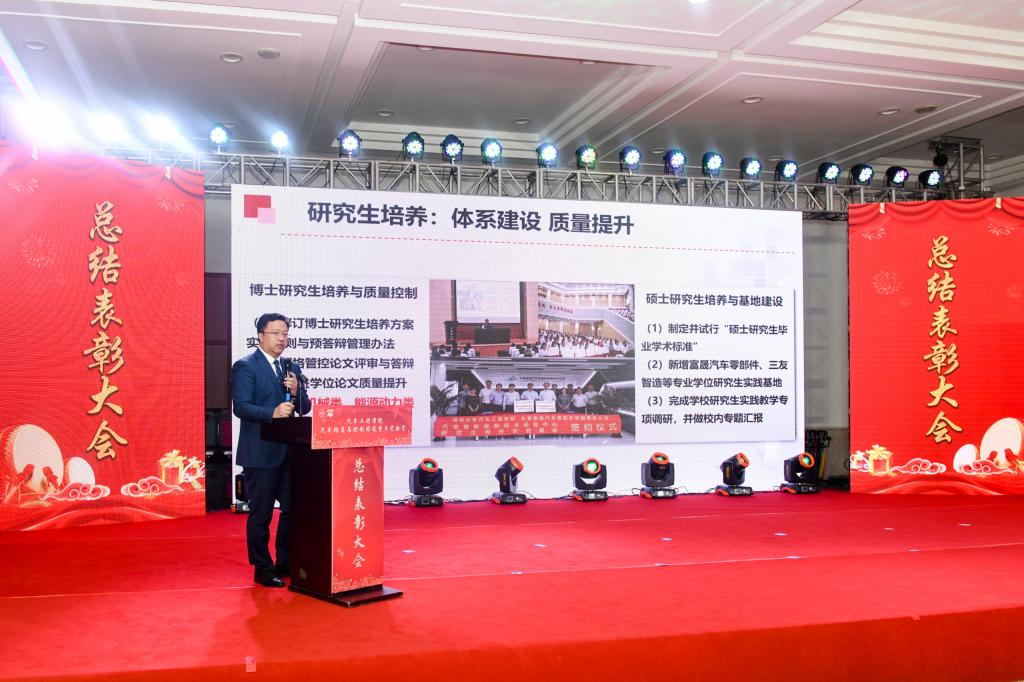 总结表彰大会由副院长林海兰主持。党委书记李善兴宣读了2019年度新葡的京集团8814检测站、汽车仿真与控制国家重点实验室关于对获得优秀共产党员,优秀党务工作者,先进党支部,“师德标兵”先进个人,“三育人”工作先进个人,获得省级教改项目、省级优秀博士论文指导教师等奖项的教学先进个人,获得科研到款前十名、论文专利综合排名前十、国家自然基金获得者、省级科技成果和荣誉称号的科研先进个人等共计102人次的表彰决定。学院和重点实验室的领导分别为获奖教师颁发荣誉证书。高振海院长代表党政领导班子从学院党建工作、学科发展、科学研究、人才培养、学生工作、对外交流等方面总结了工作中的成绩,并就2020年的工作进行了展望和部署。高院长提到,新的一年学院将以本科教学为重点,加强一流学科建设,着重培养一流人才,提升科研能力,凝心聚力,共赢未来。会议最后,高院长代表学院向全体教职工送上了新年祝福。