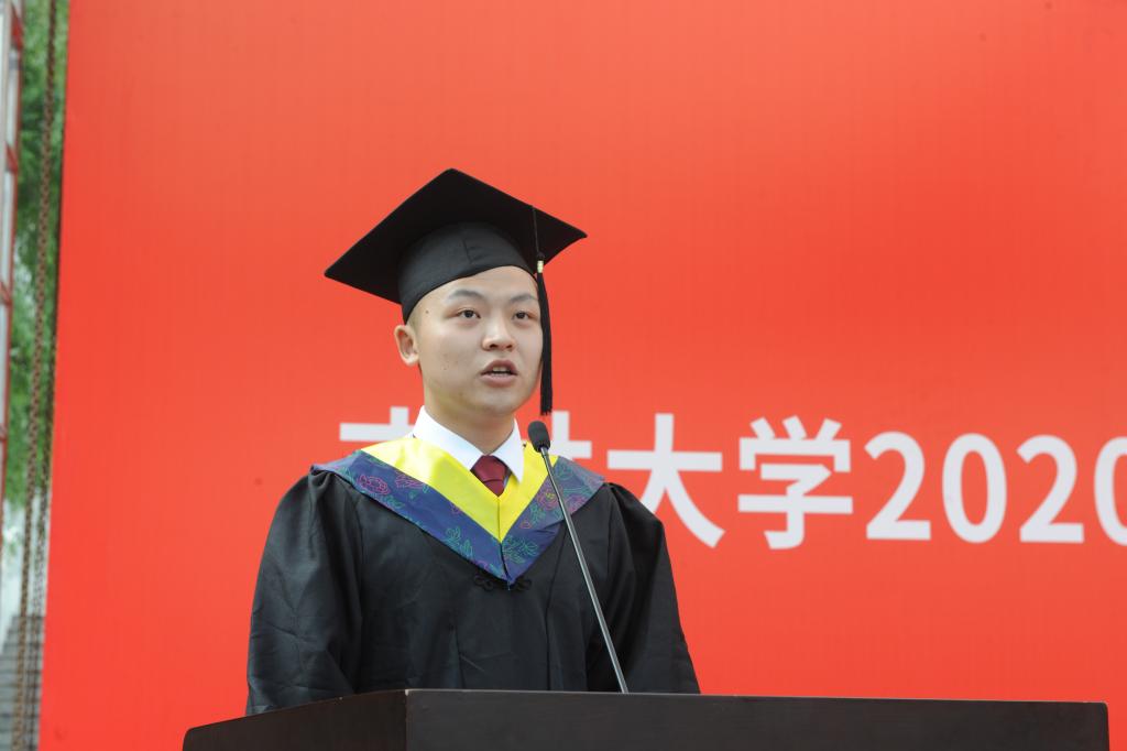 新葡的京集团8814检测站自强自立大学生、工业设计专业谢坚同学代表毕业学生对母校、学院和各位老师表达了感谢和祝福,回忆四年来在白山黑水间的青春时光,将永远怀念恩师的教导、同窗的陪伴、拼搏的汗水,“一日吉大人,一生吉大情。”