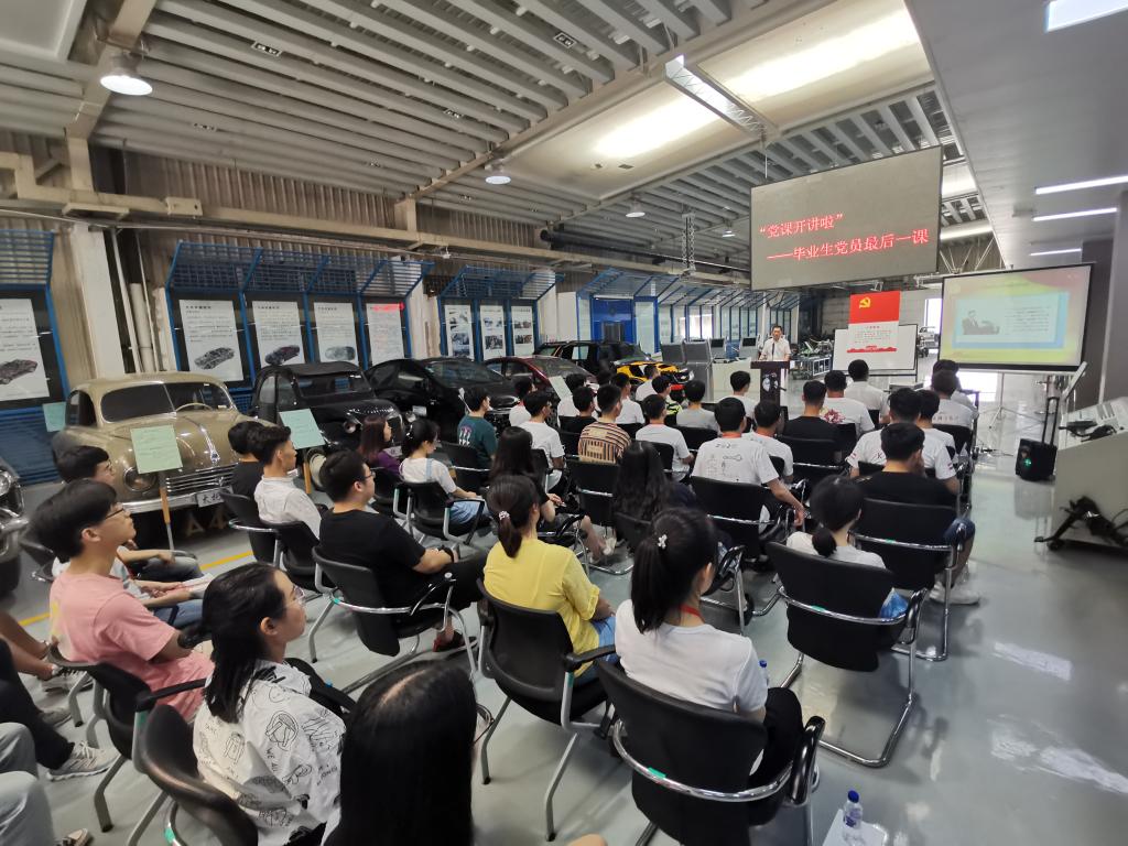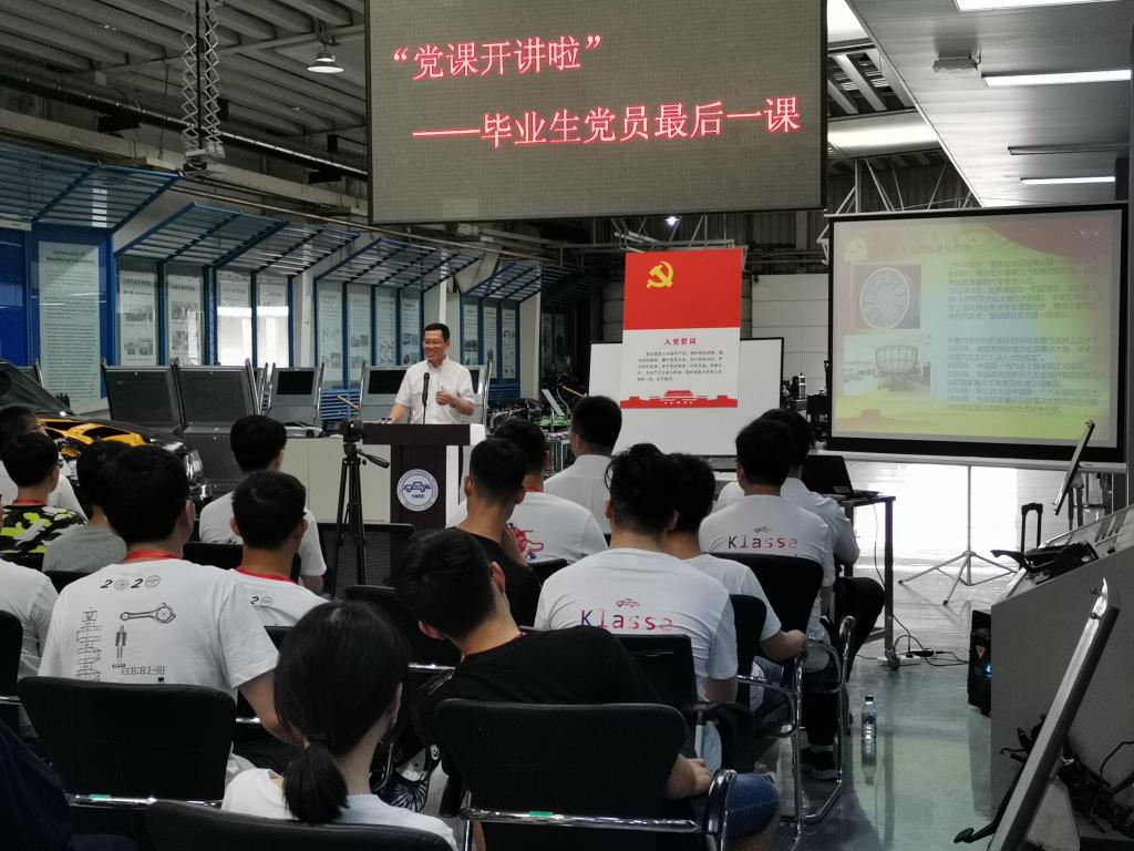 6月29日,新葡的京集团8814检测站党委举行了主题为“抗击疫情,爱党报国——吉大汽车人的使命与担当”的毕业生党员最后一次党课。为满足疫情防控要求,保证良好通风,党课被安排在汽车构造实验室进行。党委书记李善兴、党委副书记兼副院长盛磊、学院相关科室老师及2020届博士、硕士、本科毕业生党员参加了本次活动。活动由学生工作办公室主任吴昊老师主持。