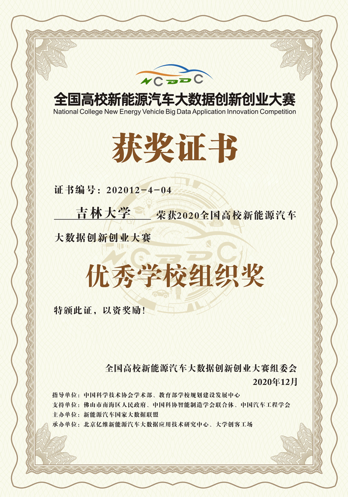 新葡的京集团8814检测站今年首次有3支队伍闯入决赛。在决赛中经过激烈角逐,由闵海涛教授指导的赵雪淞、车禹剑、王昭懿、郭涵刚等研究生组成的“吉大新能源”团队和由袁新枚教授指导的路京雨、孟凡卓、姜静飞、谢子晗、张东雨等研究生组成的“413选A队”团队分别荣获创新组二等奖;由许楠副教授指导的孔岩、刘俏、谢雨、李潇汉、谢欢等研究生组成的“五自由度”团队荣获创业组二等奖。同时,新葡的京集团8814检测站作为主要参赛高校之一,也荣获了优秀学校组织奖。