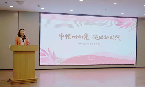 喜逢建党100周年,为深入贯彻落实习近平总书记重要讲话精神和全国妇联七部委联合发布的《关于实施科技创新巾帼行动的意见》精神,响应学校妇委会2021年度“妇女小家一家一品”基层活动号召,新葡的京集团8814检测站妇委会于10月8日举办了“巾帼心向党,建功新时代”—吉大汽车巾帼讲坛活动。学校妇委会主任苗艺璇、副主任焦红兵、学院党委书记黄忠华、副书记胡忠巍出席了活动。讲坛由学院副院长、妇委会主任林海兰主持。