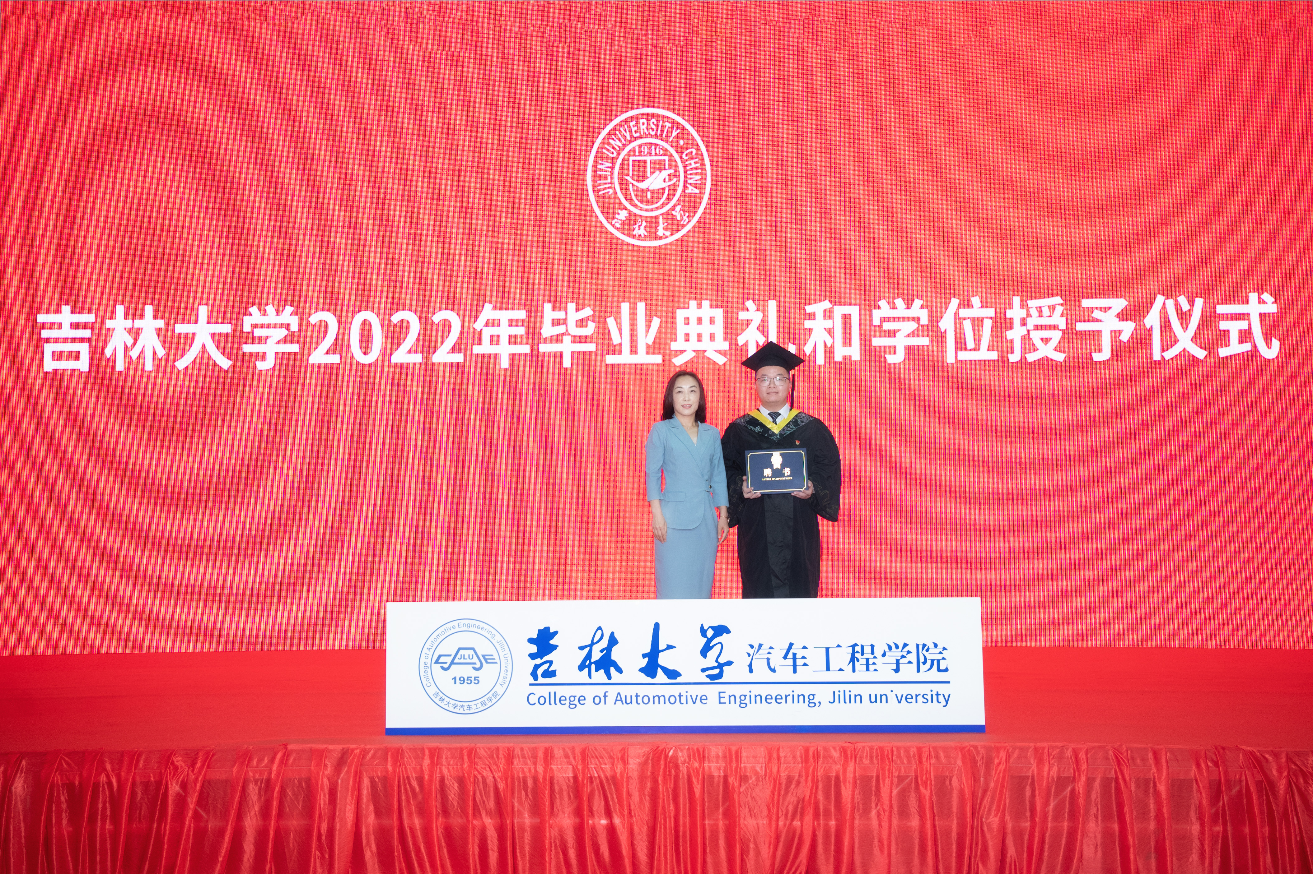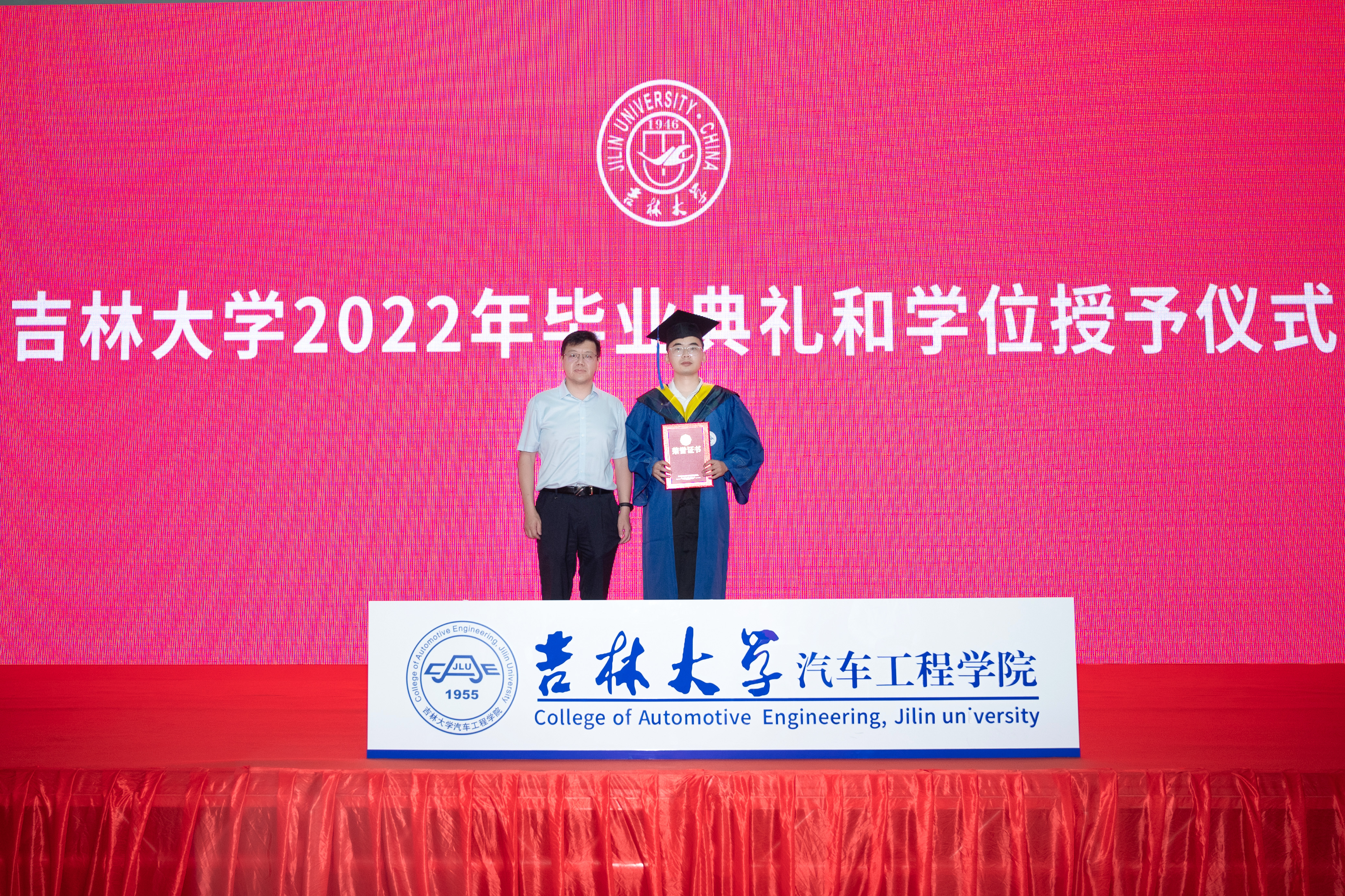 典礼在庄严的国歌声中拉开了序幕。学院党委书记黄忠华老师宣读《关于表彰2022届优秀毕业生的决定》,并为优秀毕业生代表2019级车辆工程专业硕士研究生张伊晗同学颁奖。