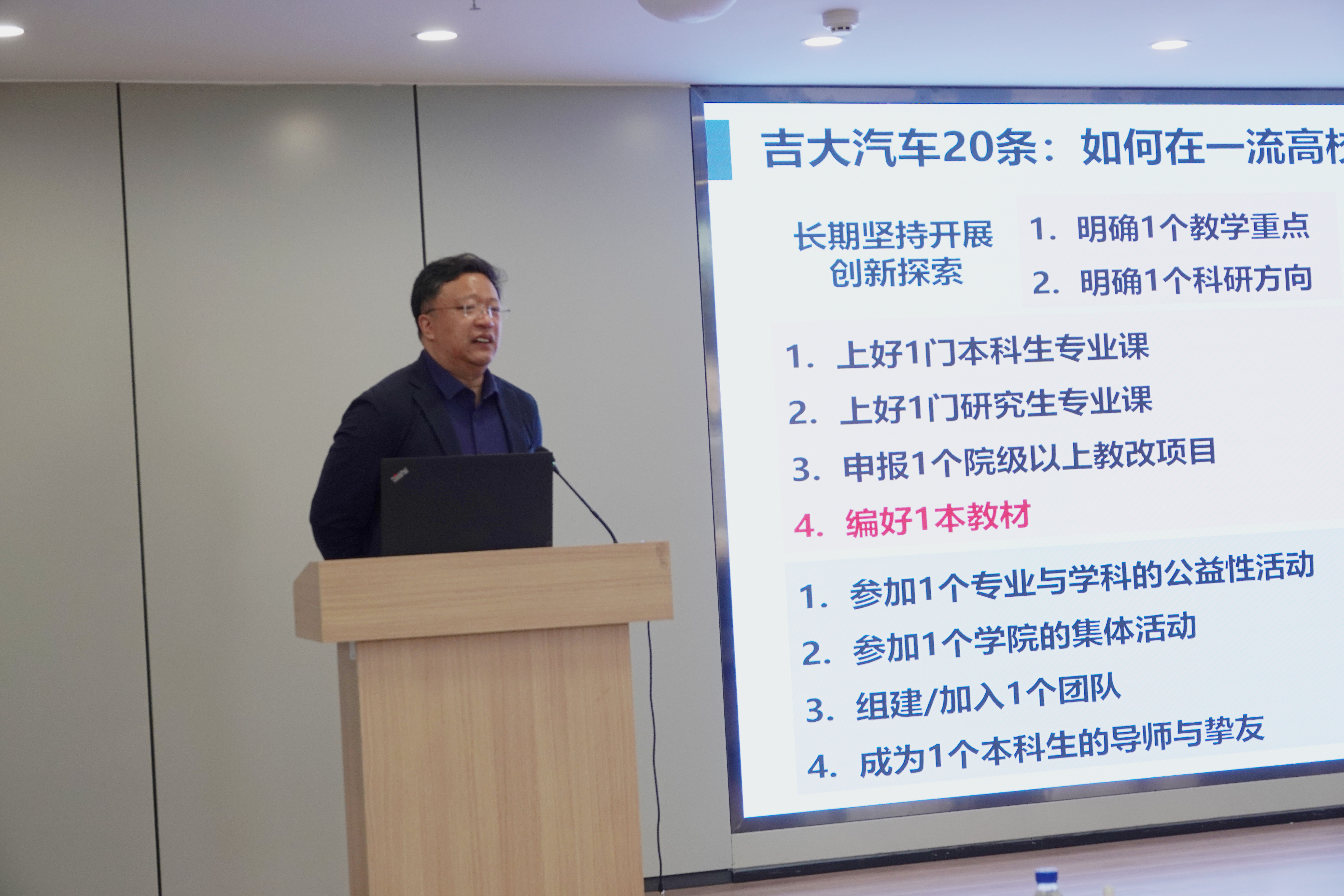 高振海院长围绕“如何在一流高校一流专业做一个合格的老师”作了讲话。他表示,要成为一名合格的高校教师,要热爱教师的身份,提高专业能力,做到持续学习,长期坚持开展创新探索,并提出了20条建议,为新教工的成长指明了思路和方向。随后,高振海院长为新入职教工颁发了院徽,希望他们牢记初心,不辱使命。