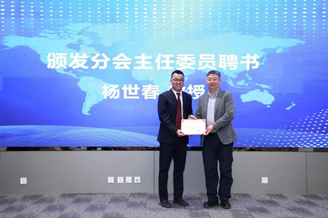 周竞赛秘书长和杨世春主任委员共同为分会副主任委员、委员、执行委员颁发聘书。