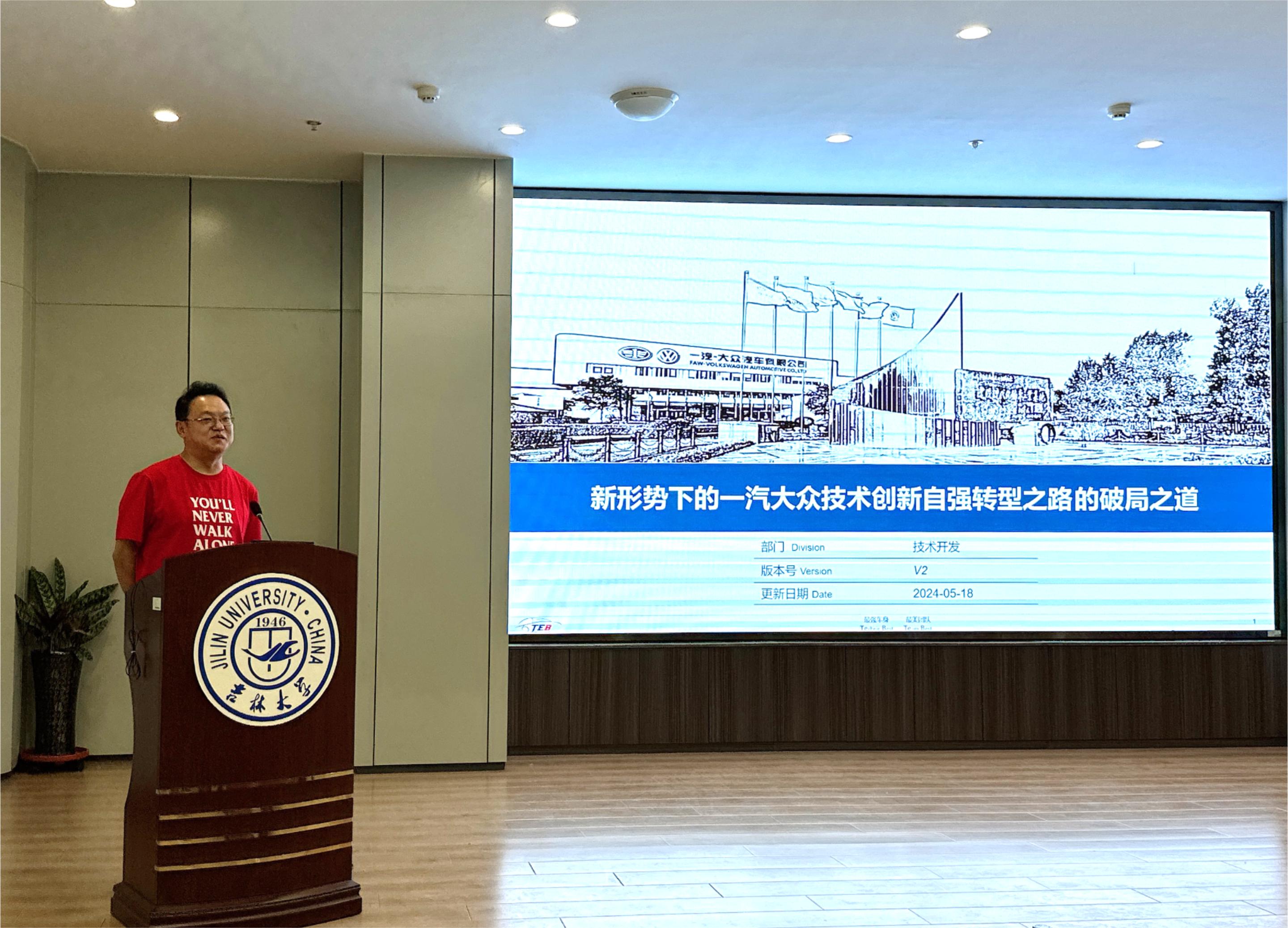 1996级校友、一汽大众整车平台项目经理姜涛围绕“新形势下合资品牌的技术创新与自强之路”展开论述,他从企业的视角剖析了行业发展的趋势与挑战,让同学们深刻感受到未来自身发展的憧憬与蓝图。