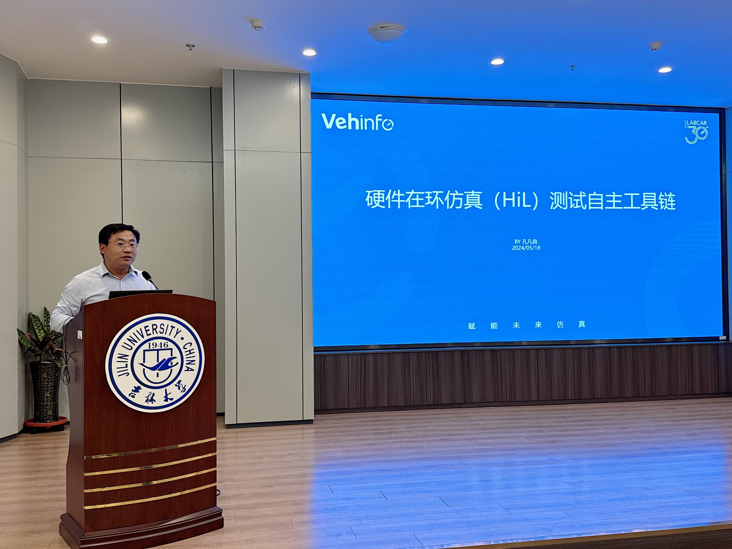 2000级校友、上海蔚赫科技有限公司技术负责人孔凡良展示了硬件在环(HIL)仿真测试自主工具链,为同学们的就业路径点亮了一盏新的指路灯。
