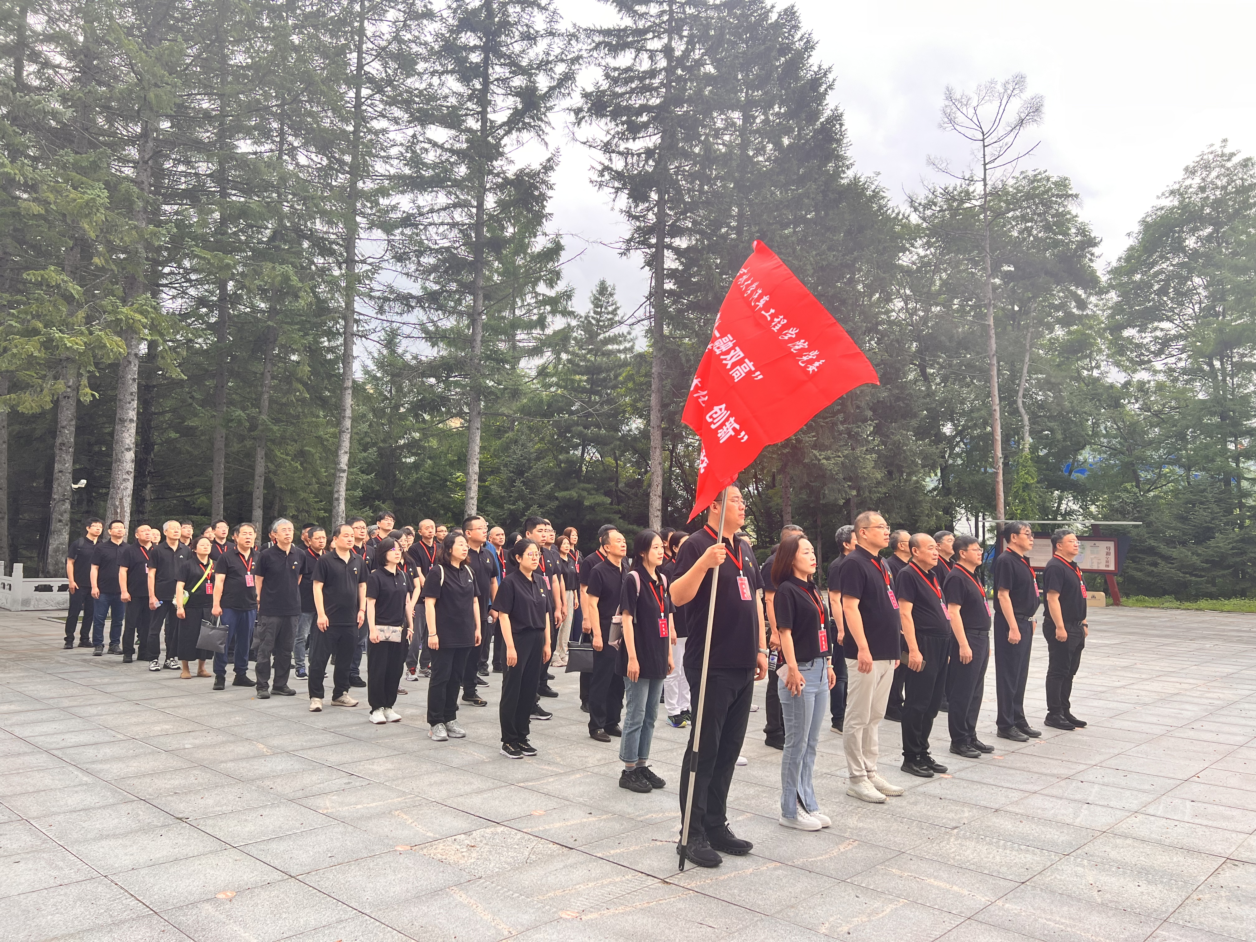 在烈士陵园纪念碑前,学员们追随烈士的足迹,感恩党的丰功,通过敬献花篮、瞻仰纪念碑等仪式充分表达对革命先烈的深切缅怀之情。全体党员面向党旗重温入党誓词,对党庄严承诺,铭记革命英烈丰功伟绩,牢记共产党员的神圣使命和担当。