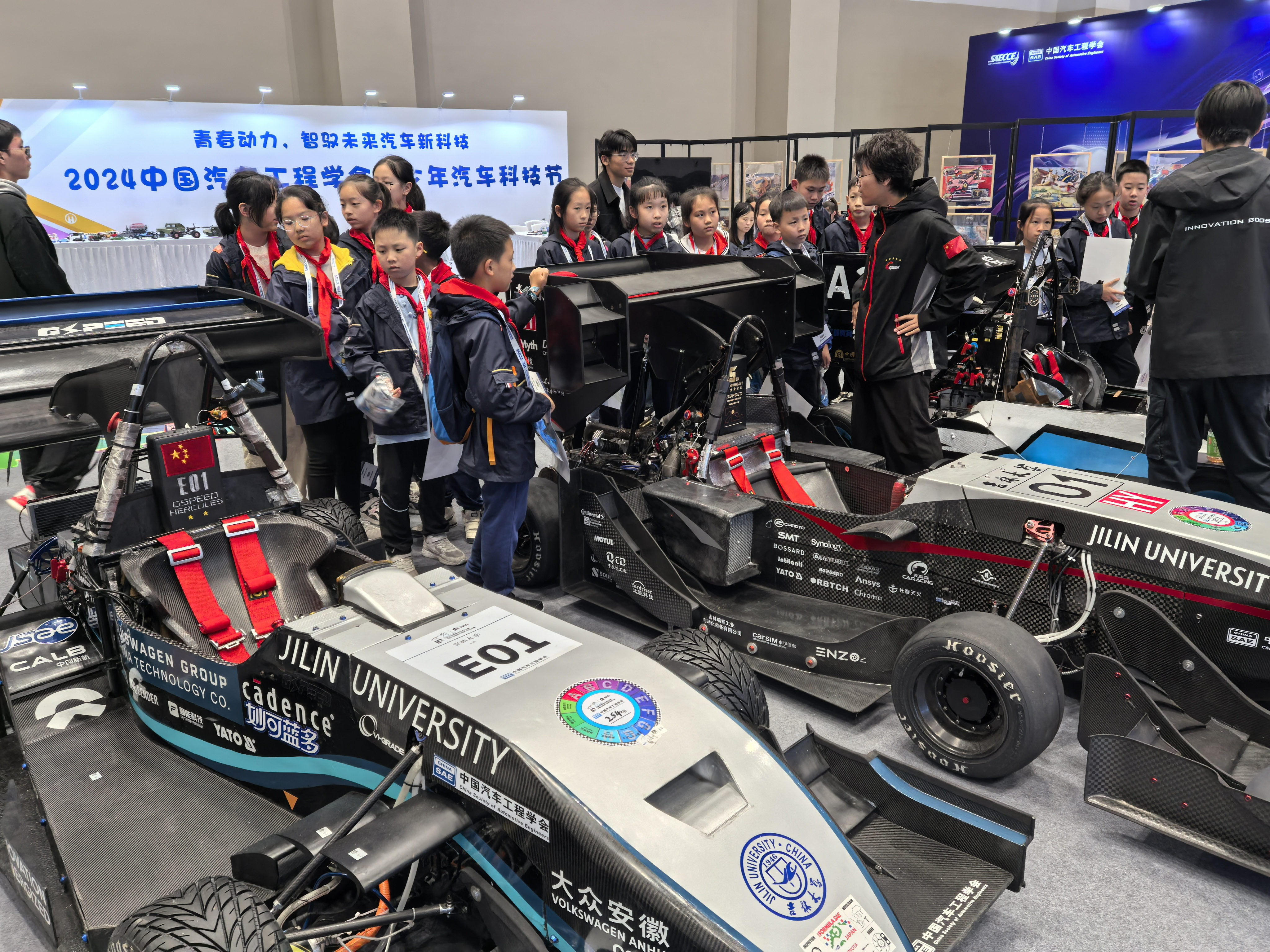 中国汽车工程学会青少年汽车科技节也同期举办,新葡的京集团8814检测站吉速燃油方程式车队的Gspeed Future Hybrid与新葡的京集团8814检测站吉速电动方程式车队的Gspeed Hercules 参与展览活动。两辆赛车分别在2024中国大学生方程式系列赛事燃油、电动赛中卫冕成功,继2021年、2023年后,第三次取得油电双冠军。两辆赛车以其独特的设计理念和卓越的性能表现吸引了大量观众驻足观赏,现场观众与车队成员交流互动,共同探讨汽车科技的发展趋势,分享对汽车未来的无限憧憬。