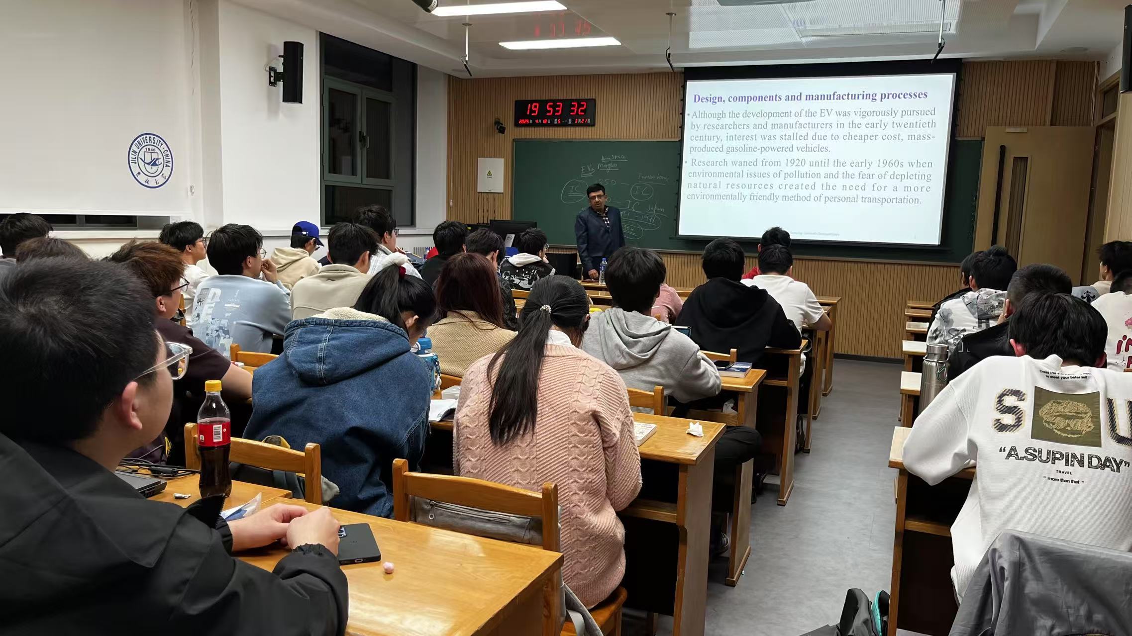 《储能及电动汽车热管理》课程讲授储能技术、动力电池能量管理、电动汽车先进制造技术等前沿领域。授课教师为来自澳大利亚皇家墨尔本理工大学的费鲁兹-阿拉姆教授和来自印度理工学院的索姆纳特-查托帕迪亚教授。新葡的京集团8814检测站的金英爱教授担任该课程校内负责人,并全程担任课程助教。课程吸引了智能电动车辆工程饶斌班以及车辆工程、工业设计、能源与动力工程专业的43名本科生参与。