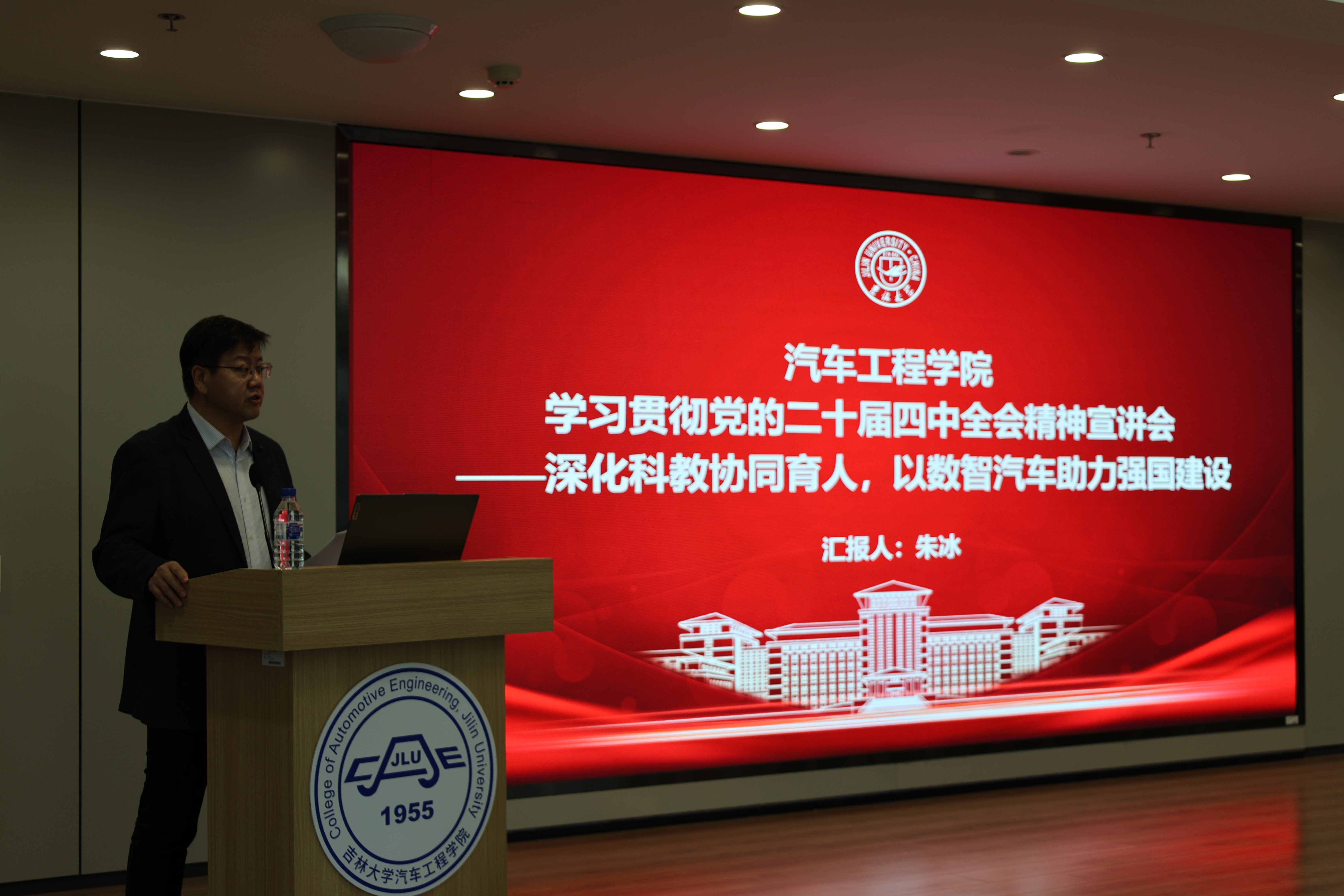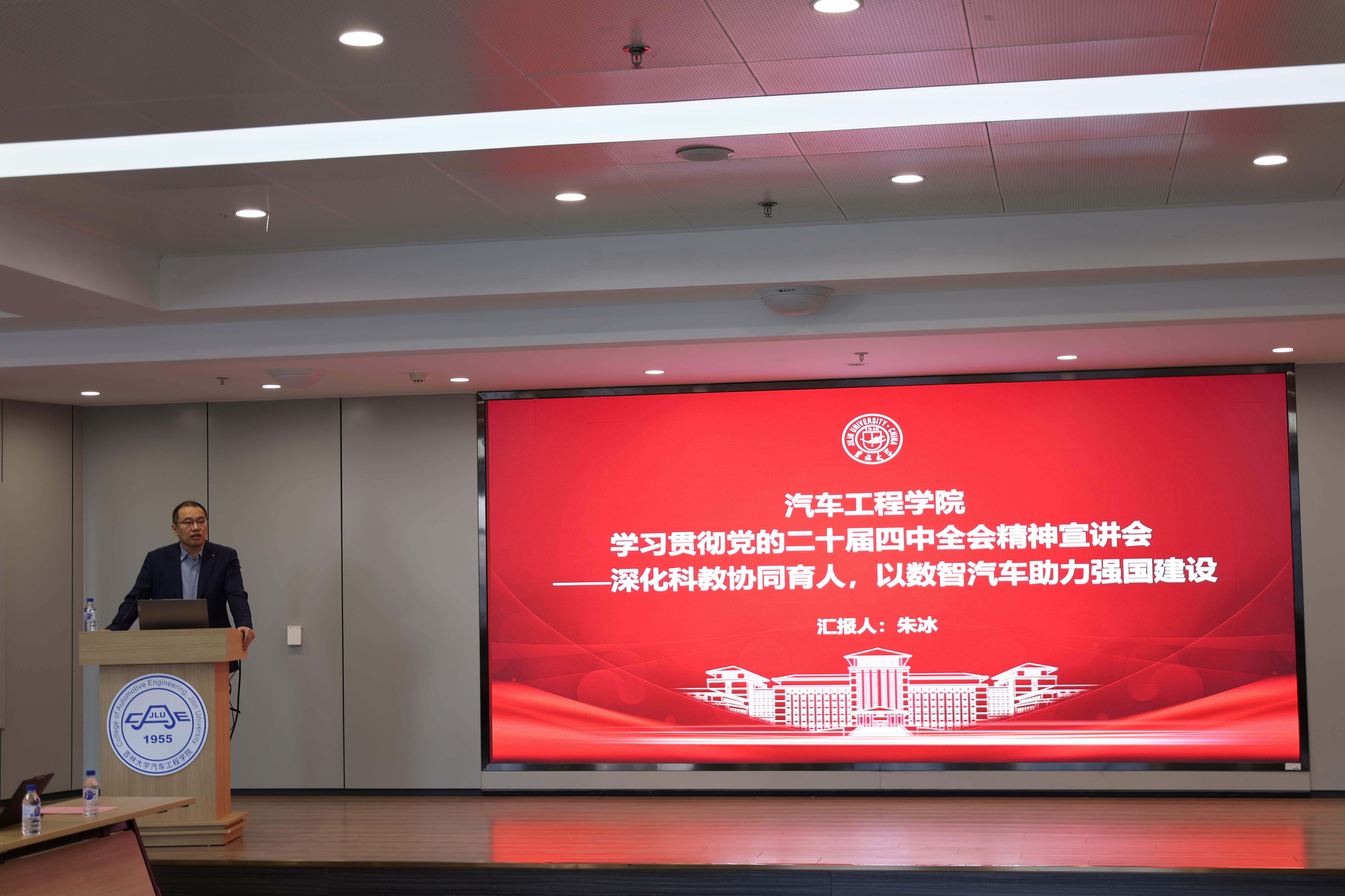 会上,朱冰教授以“深化科教协同育人 以数智汽车助力强国建设”为主题,系统阐述了党的二十届四中全会的重大意义,深入解读了“十五五”时期经济社会发展的指导方针和主要目标。结合学院发展规划与中心工作,朱冰表示,一是抓学科、建学科,以一流学科引领一流学院建设,结合汽车行业发展趋势,以“数智汽车”为着力点,创设一级交叉学科新引擎。二是服务国家战略,布局国家急需专业,通过产教融合、科教融汇、国际融通,创建数智汽车人才培养新方案。三是聚焦国家战略需求,从极智动力、数智底盘、智能座舱、自动驾驶等方面支撑汽车产业科技自立自强,创新汽车研究新高地。四是引育并举强化人才队伍建设,一体推进教育、科技、人才发展,启动学院十佳研究生海外培养计划,创立引育人才新路径。他强调,全院师生要以党的二十届四中全会精神为指引,聚焦国家战略需求,将学习成果转化为推动学院内涵式发展的实际行动,为实现高水平科技自立自强贡献吉大汽车智慧和力量。