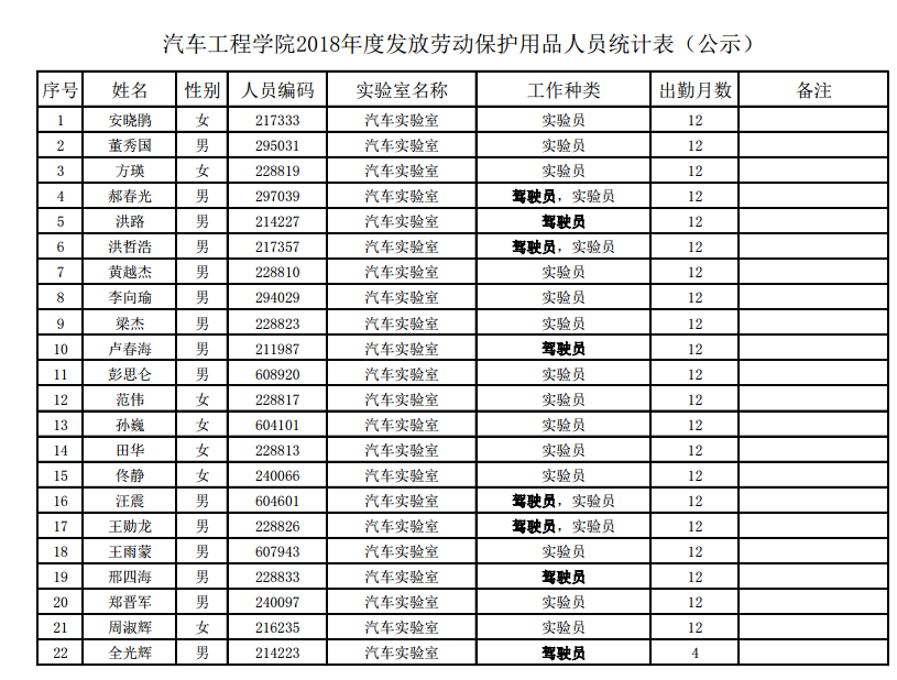 根据《关于开展2018年度学校劳动保护用品和营养保健津贴统计发放工作的通知》(实管函〔2019〕15号)有关精神,现对新葡的京2018年度发放劳动保护用品以及营养保健津贴人员名单进行公示,公示日期:2019年5月30日至2019年6月1日。公示期内如有异议,请联系学院科研与实验室管理办公室,联系人:陈雪梅,联系电话:85095833,电子邮箱:xuemei@jlu.edu.cn。