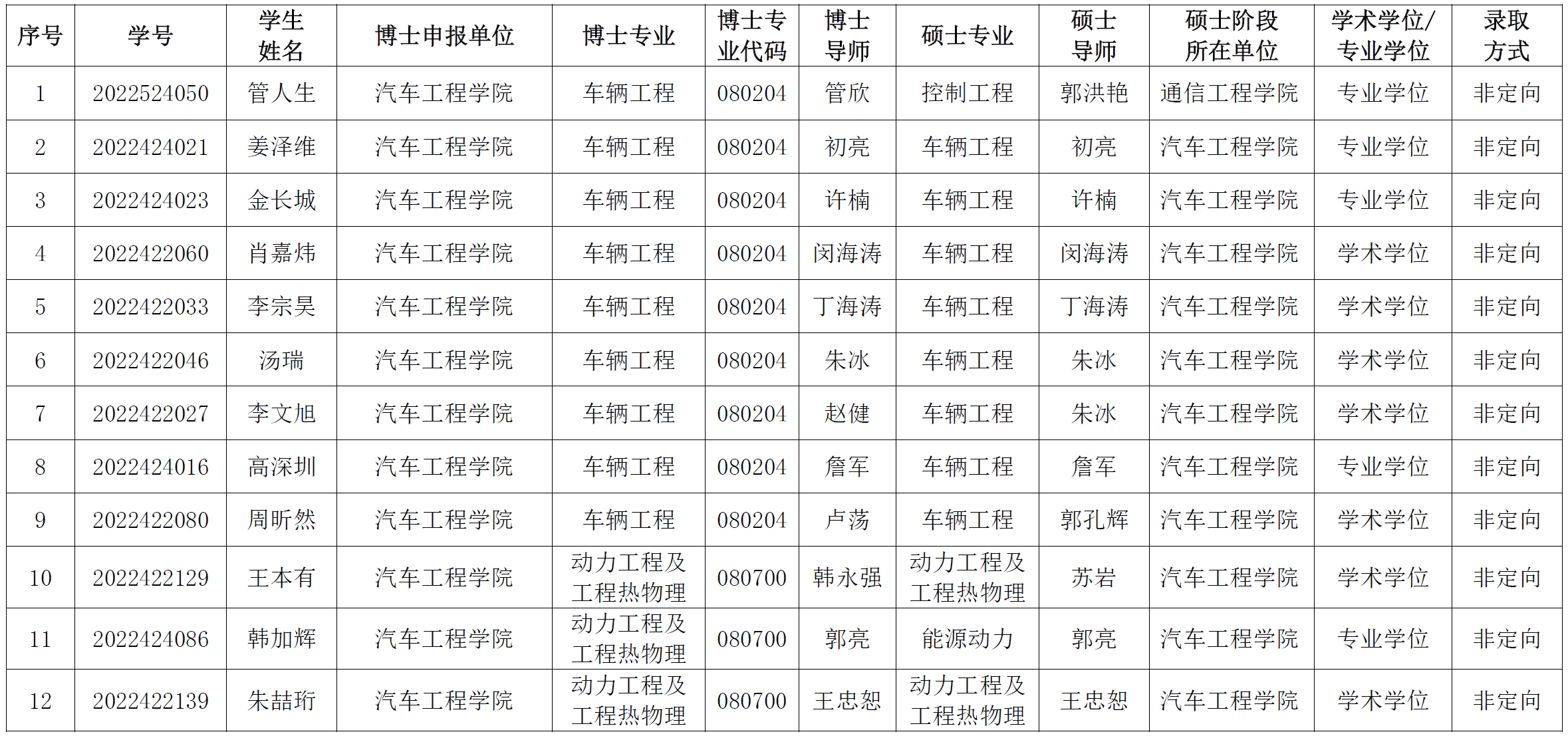 新葡的京集团8814检测站2024年硕博连读研究生拟录取名单公示如下: