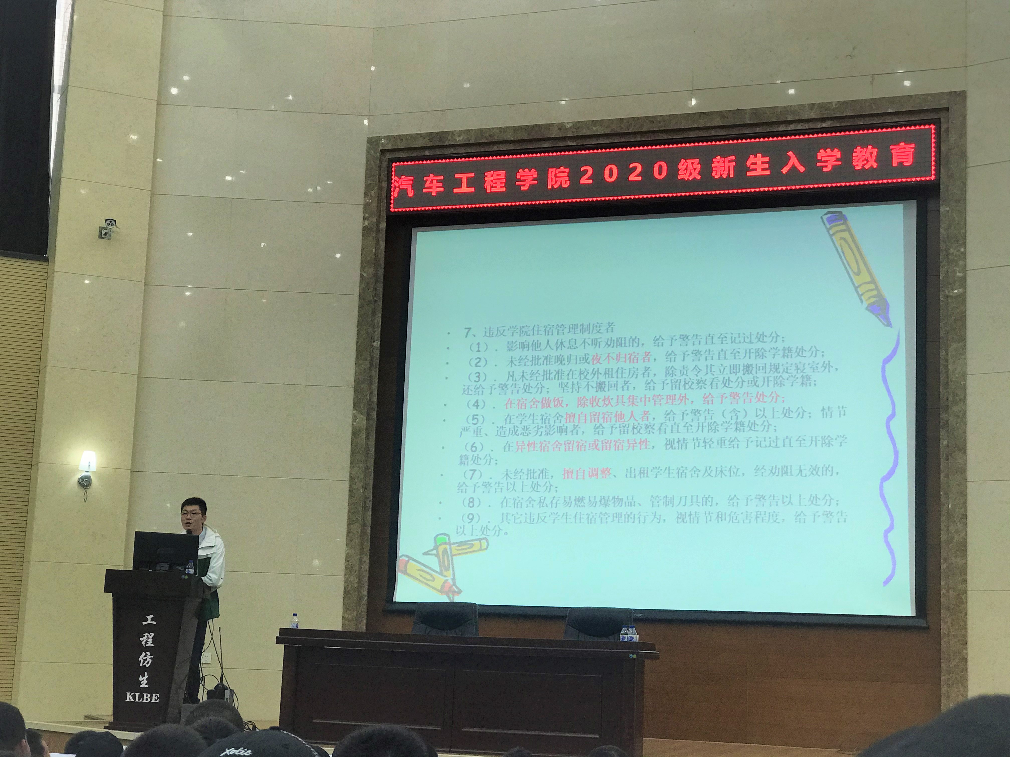 为帮助新同学了解大学校园生活,10月8日下午3点,新葡的京集团8814检测站于仿生报告厅召开了2020级新生校规校纪教育大会。2020级辅导员李季老师担任主讲人。