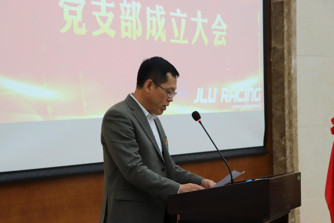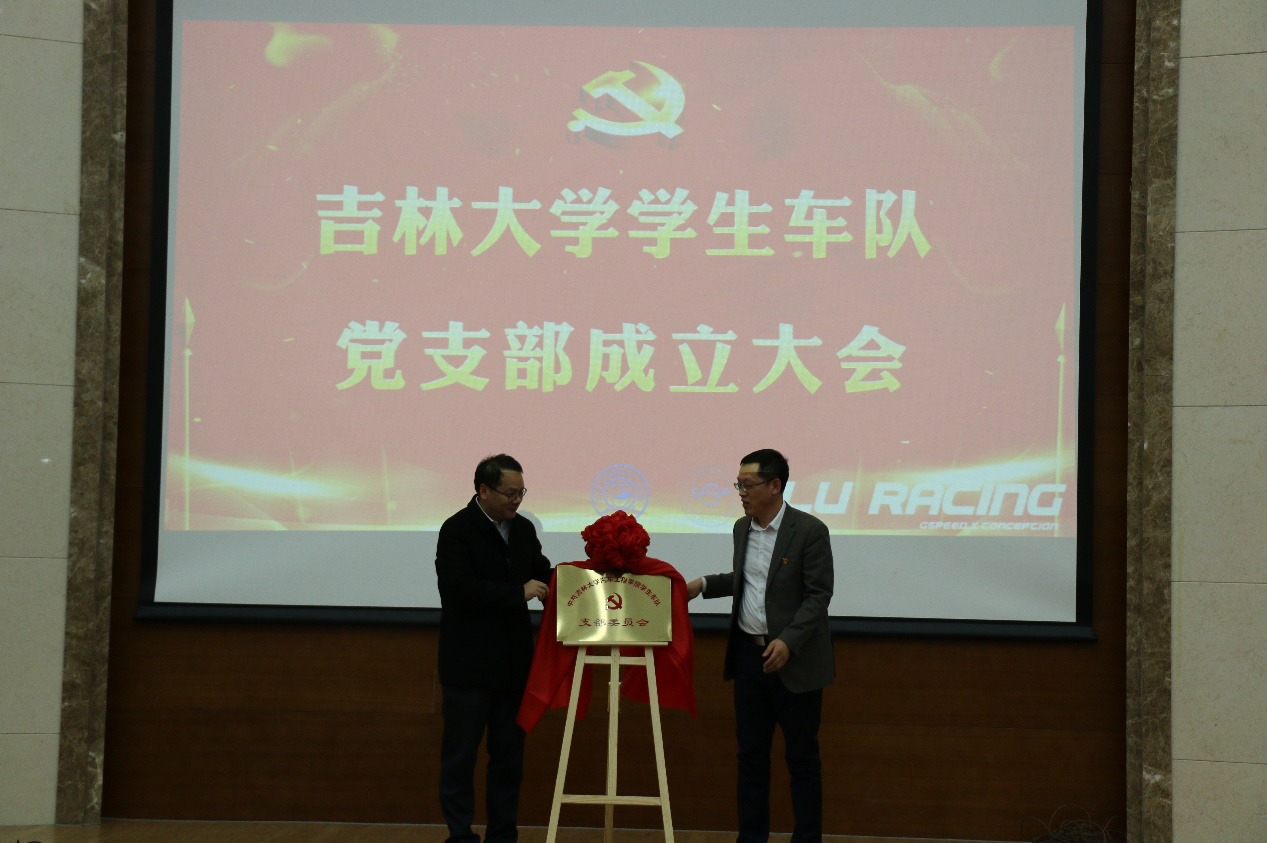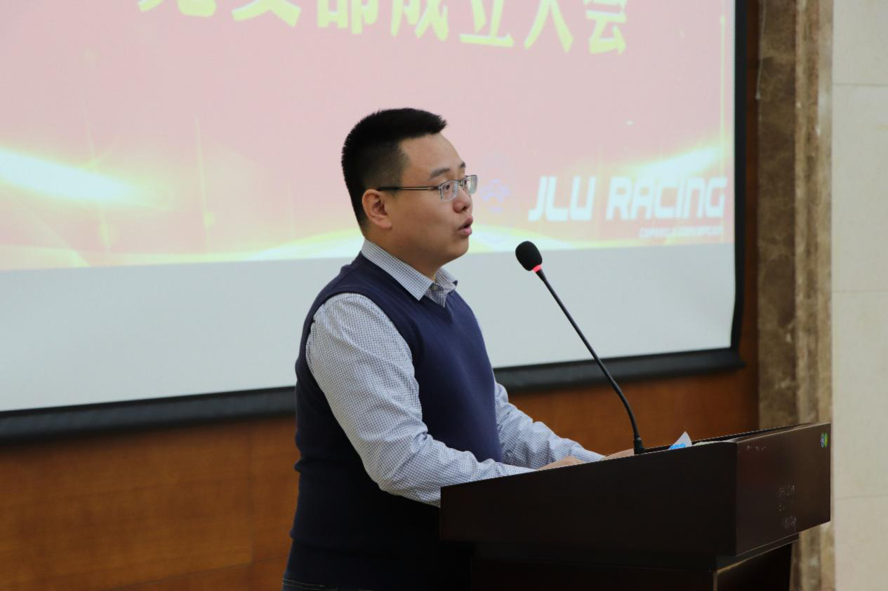 接下来学生车队党支部成立仪式正式开始。新葡的京集团8814检测站党委书记李善兴老师宣读了学生车队党支部成立决定;学生工作部部长代磊老师同李善兴老师一同为学生车队党支部揭牌;同时,代磊部长为马克思主义学院副院长石瑛教授颁发聘书,聘任其为学生车队党支部理论学习指导教师。最后,学生车队党支部书记金兆辉老师代表支部讲话。