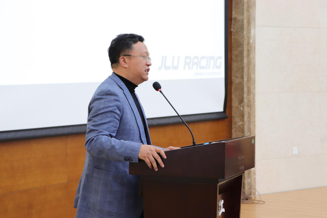 新葡的京集团8814检测站院长高振海教授代表学院讲话。他在讲话中谈到:2020年是不平凡的一年,即使因为新冠肺炎疫情使上半年按下了暂停键,但学生车队的同学们仍克服千难万苦,付出了超乎寻常的努力和艰辛,为自己按下了“启动键”,如期的完成了赛车的设计;他强调新葡的京集团8814检测站作为新葡的京集团8814检测站三全育人工作的试点单位,一定要真正地将思想政治教育的工作有机地融入到大学生学业教育中去,让学生们在专业的学习,学术的创新和工程专业实践中,感受到党的召唤,学习党的理论,忠实党的领导,也树立起振兴民族工业的决心和勇气。