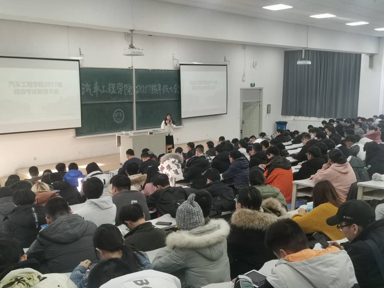 本次年级大会从诚信考试教育切入主题,李娇老师强调了考试的各项要求,其中格外强调了考试禁止作弊的要求,告诫各位同学认真对待考试,诚信考试。紧接着,李娇老师对学生日常打卡进行了叮嘱,并希望17级全体学生能全部准时完成每日健康打卡任务。随后,李老师又向同学们讲解了医保缴费的步骤以及寒假禁止留校等相关问题。最后,李娇老师说明了寒假的时间安排,希望各位同学能充分利用寒假时间。