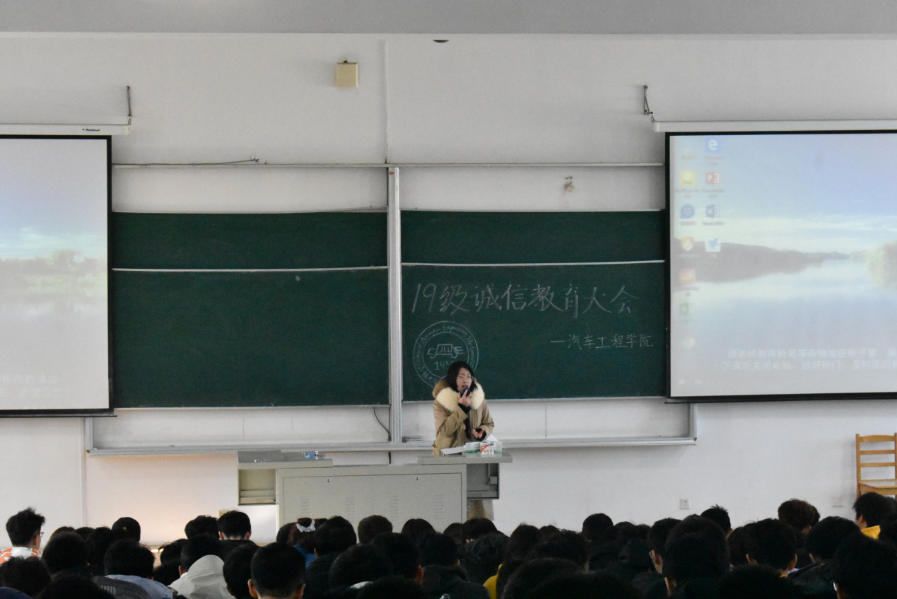 新葡的京集团8814检测站2019级于2020年12月4日上午在逸夫教育大楼A511召开考前诚信考试教育年级大会,2019级辅导员李佳琦主持本次会议,参加本次会议的有2019级所有本科生。