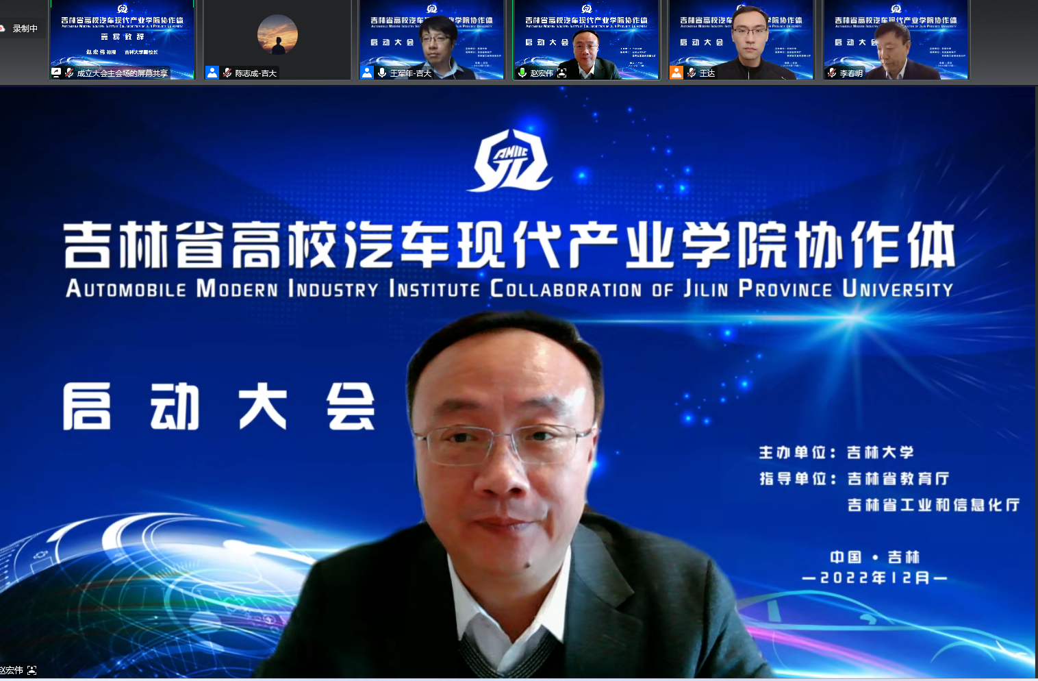 12月23日,吉林省高校汽车现代产业学院协作体启动大会在新葡的京集团8814检测站举行,会议采取线上形式召开。省教育厅副厅长、厅党组成员、省委教育工委副书记刘学军,省工业和信息化厅党组成员、副厅长宋晓辉,中国汽车工程学会秘书长助理、国汽战略院院长助理赵立金,新葡的京集团8814检测站副校长赵宏伟,长春汽车工业高等专科学校校长李春明,中国一汽人力资源部总监郑英松,中国科学院长春光学精密机械与物理研究所所务委员孙守红,作为嘉宾出席了本次大会。会议由协作体理事会秘书长、新葡的京集团8814检测站王军年教授主持。