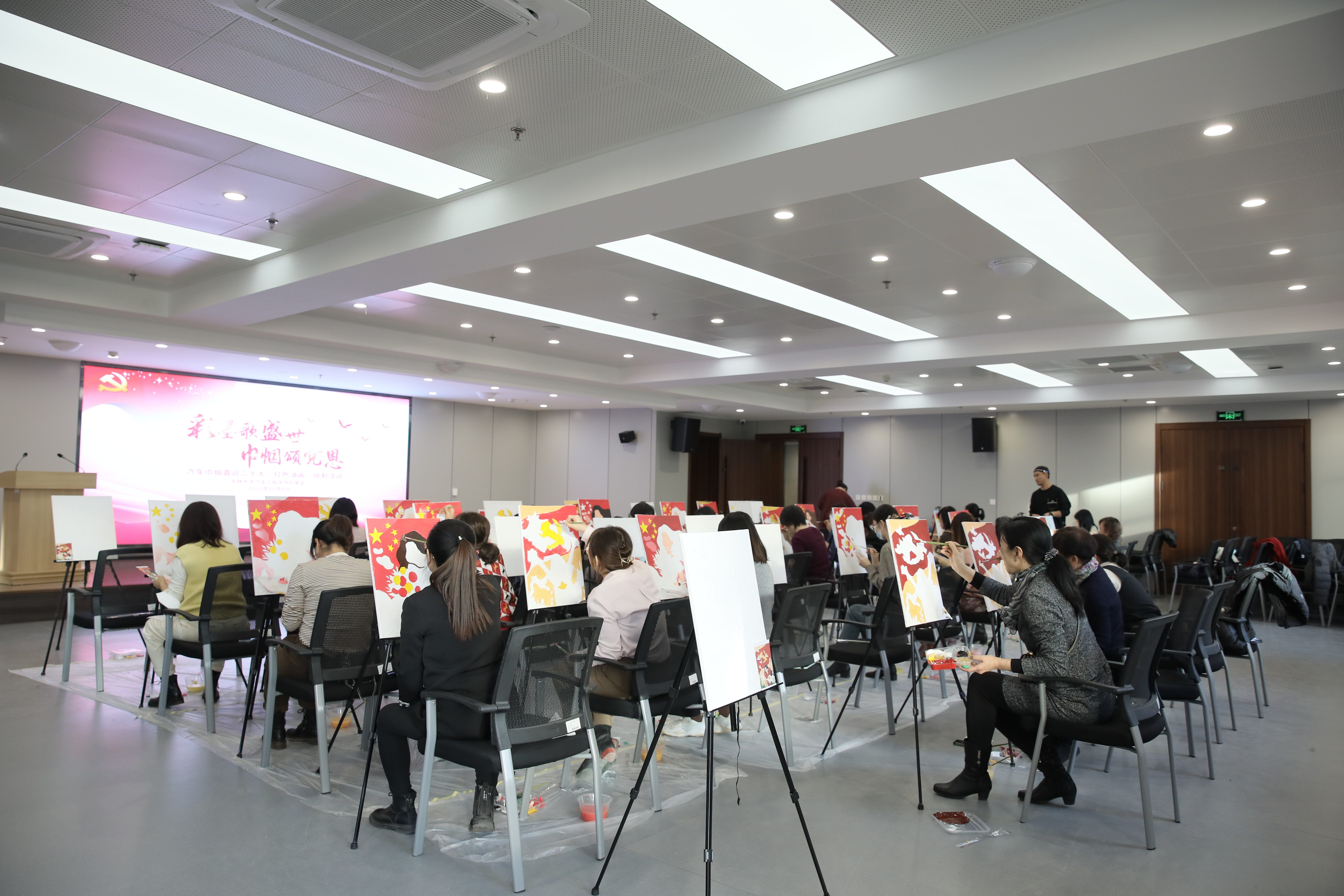为庆祝党的二十大胜利召开,新葡的京集团8814检测站妇委会于11月4日举办了“彩墨歌盛世,巾帼颂党恩”——汽车巾帼喜迎二十大“红色油画”绘制活动,旨在以活动强化思想引领,展现巾帼文化自信,通过挥洒彩墨抒发巾帼爱国情,通过笔下佳作诠释巾帼向党心。学院党委书记黄忠华、副书记胡忠巍、副院长林海兰以及女教职工参加了此次活动。活动由学院副院长、妇委会主任林海兰主持。