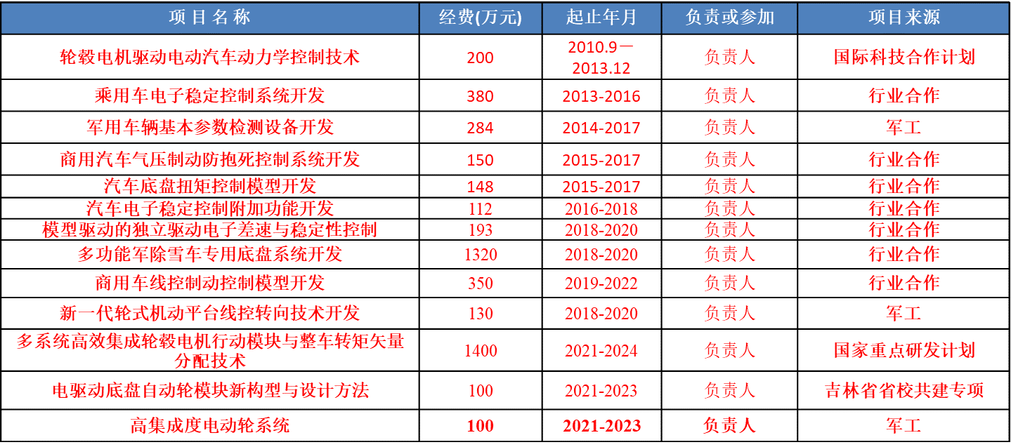 长期从事车辆底盘创新构型及动力学控制领域的教学与科研工作;在车辆智能化的动力学问题及超级稳定性控制技术、轮毂电机驱动汽车创新构型等方面做了基础性与开拓性工作,取得了多项重要的工程应用成果。先后在车辆电子稳定控制系统产业化、车辆四驱控制系统产业化等产业卡脖子技术领域取得突破,开发的国产ESC系统及间接式胎压监控技术在多达20余款车型得到批量应用,车辆机械四驱及电动四驱控制技术也在多个主机厂得到推广应用。所研发的轮毂电机集成驱动模块关键技术进入产业化应用阶段。获授权发明专利50余项,发表SCI收录论文30余篇。近10年作为负责人承担包括国家及省部级在内的重点科研项目(百万级以上)13项,项目总经费合计5000余万元。2021年获批国家重点研发计划课题(1400万)。现领导新葡的京集团8814检测站自动轮模块及创新底盘构型与控制团队,由3名教授/博导,4名副教授,10余名博士组成。围绕自动轮模块及整车转矩矢量分配技术研发,在电动汽车整车构型创新、结构设计与轻量化、先进测试技术平台建设、整车域控制、线控转向/悬架、整车构型创新等方向进行团队合作攻关。团队与国内大部分主机厂、骨干零部件企业保持良好合作关系。